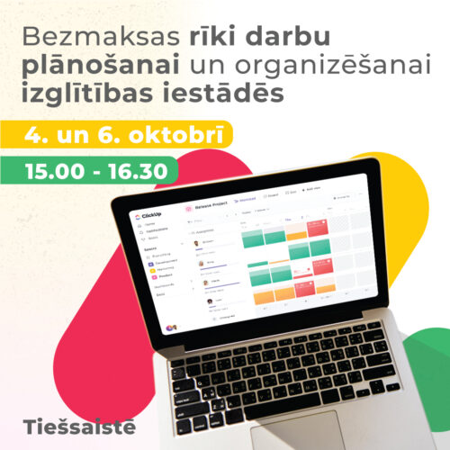 21. septembris Ventspils Digitālais centrs aicina tiešsaistē apgūt bezmaksas rīkus darbu plānošanai un organizēšanai izglītības iestādēs