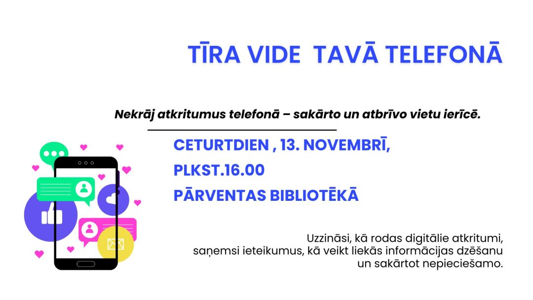 ‘Tīra vide tavā telefonā”. Nekrāj atkritumus telefonā – sakārto un atbrīvo vietu ierīcē. Nodarbībā uzzināsi, kā rodas digitālie atkritumi,