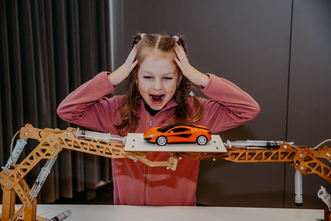 Vai zināji, ka ūdens spiediens var paveikt lielus darbus? Darbnīcā izzināsim, kas ir hidraulika un kā tā tiek izmantota ikdienā, kā arī veidosim mehānismus, kas spēj pacelt un kustināt objektus. Darbnīca, kurā visa ģimene, darbojoties kopā, kļūst par īstiem inženieriem.