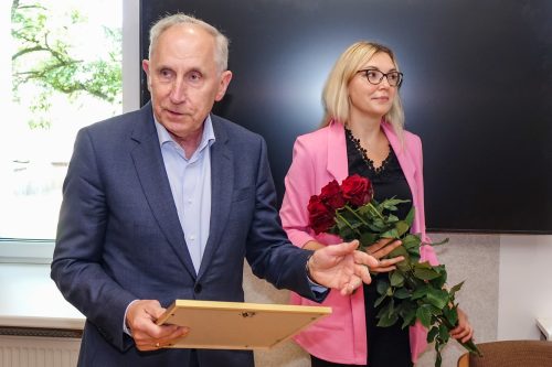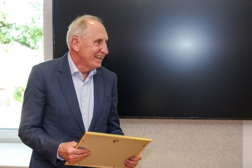 Atzinības raksta pasniegšana Jurģim Rasam