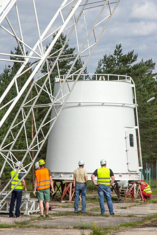 Irbenes Radioteleskopa RT-32 balsta tornī uzcelta paplašinātā uztvērēju kabīne un sekundārā spoguļa pozicionēšanas sistēma