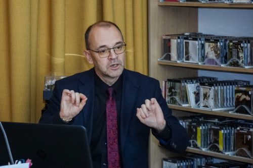 Muzikālo sarunu klubs ar komponistu Rihardu Dubru Ventspils mūzikas bibliotēkā. “Gruzija. No tautas mūzikas līdz Kančeli”