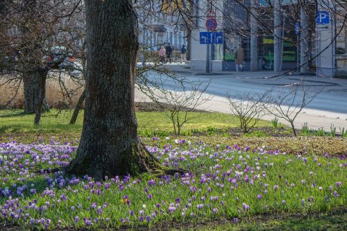 Ventspils pavasaris. Krokusu laiks pilsētā.