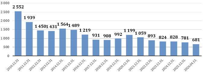 Bezdarbnieku skaits Ventspils pilsētā no 2010. gada 31. decembra līdz 2026. gada 13. aprīlim