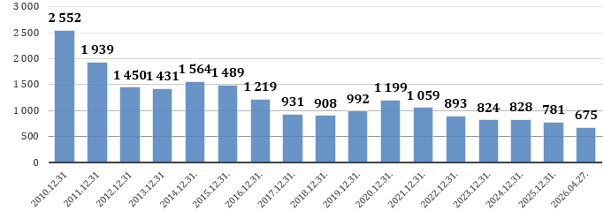 Bezdarbnieku skaits Ventspils pilsētā no 2010. gada 31. decembra līdz 2026. gada 27. aprīlim