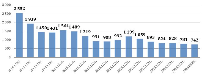 Bezdarbnieku skaits Ventspils pilsētā no 2010. gada 31. decembra līdz 2026. gada 23. martam