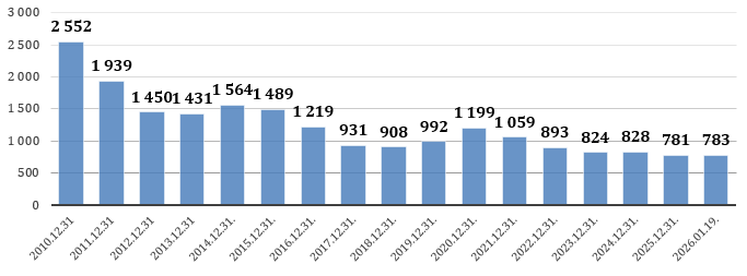 Bezdarbnieku skaits Ventspils pilsētā no 2010. gada 31. decembra līdz 2026. gada 19. janvārim