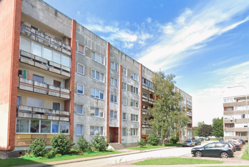 LaiksDaudzdzīvokļu dzīvojamo māju rajonos (zaļš Renault Master, valsts reģistrācijas numurs HS-2692)