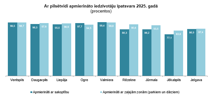 Ventspils ir viena no sakoptākajām un klusākajām valstspilsētām, liecina Centrālās statistikas pārvaldes (CSP) 2025. gadā veiktā iedzīvotāju aptaujā par dzīves kvalitāti valstspilsētās (izņemot Rīgu). Teju visi jeb 96,8 % Ventspils iedzīvotāju ir pilnībā vai daļēji apmierināti ar dzīvi savā pilsētā.
