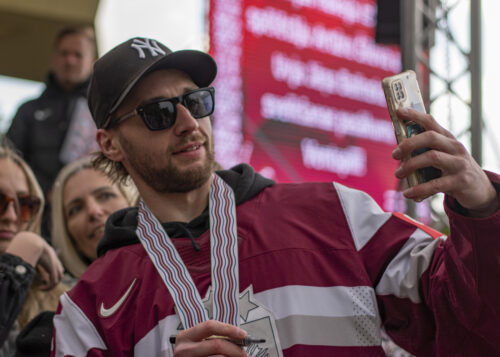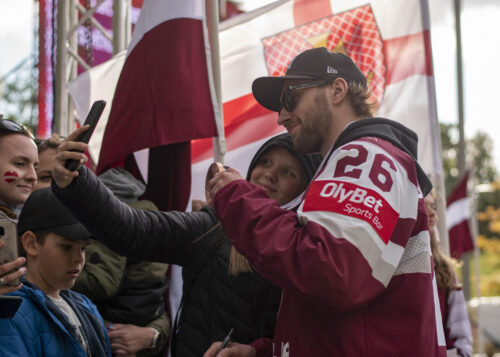 Hokeju faniem bija iespēja apskatīt un aptaustīt bronzas medaļas, kā arī iegūt hokejistu autogrāfus.
