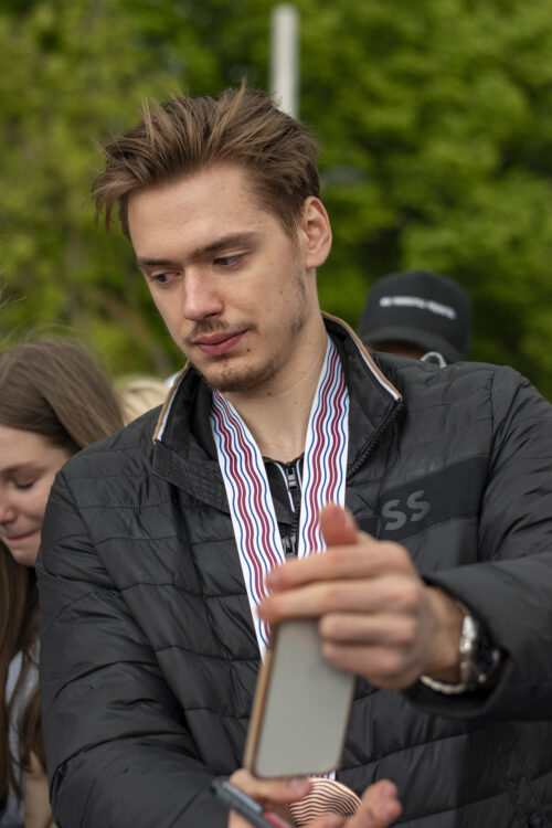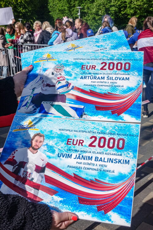 Šodien, 2. jūnijā, plkst. 18:00 Ventspilī pie Koncertzāles “Latvija”, klātesot ap 5000 hokeja fanu, sveica Latvijas izlases hokejistus Uvi Jāni Balinski un Artūru Šilovu.