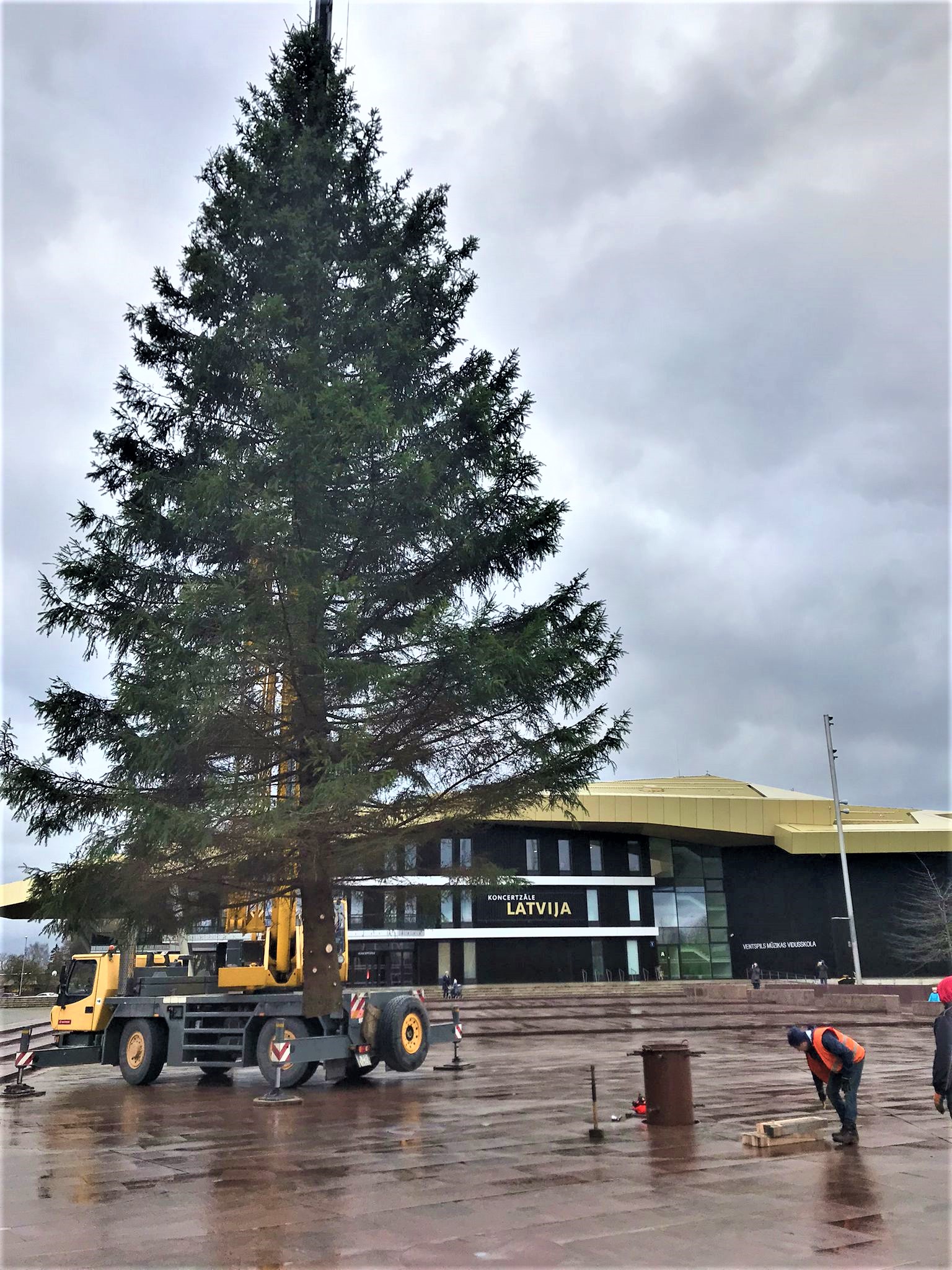 Ventspils galvenā Ziemassvētku egle atvesta no A/S “Latvijas Valsts meži” Mētru iecirkņa – mežaudzes Ventspils novadā starp Tārgali un Pilteni.