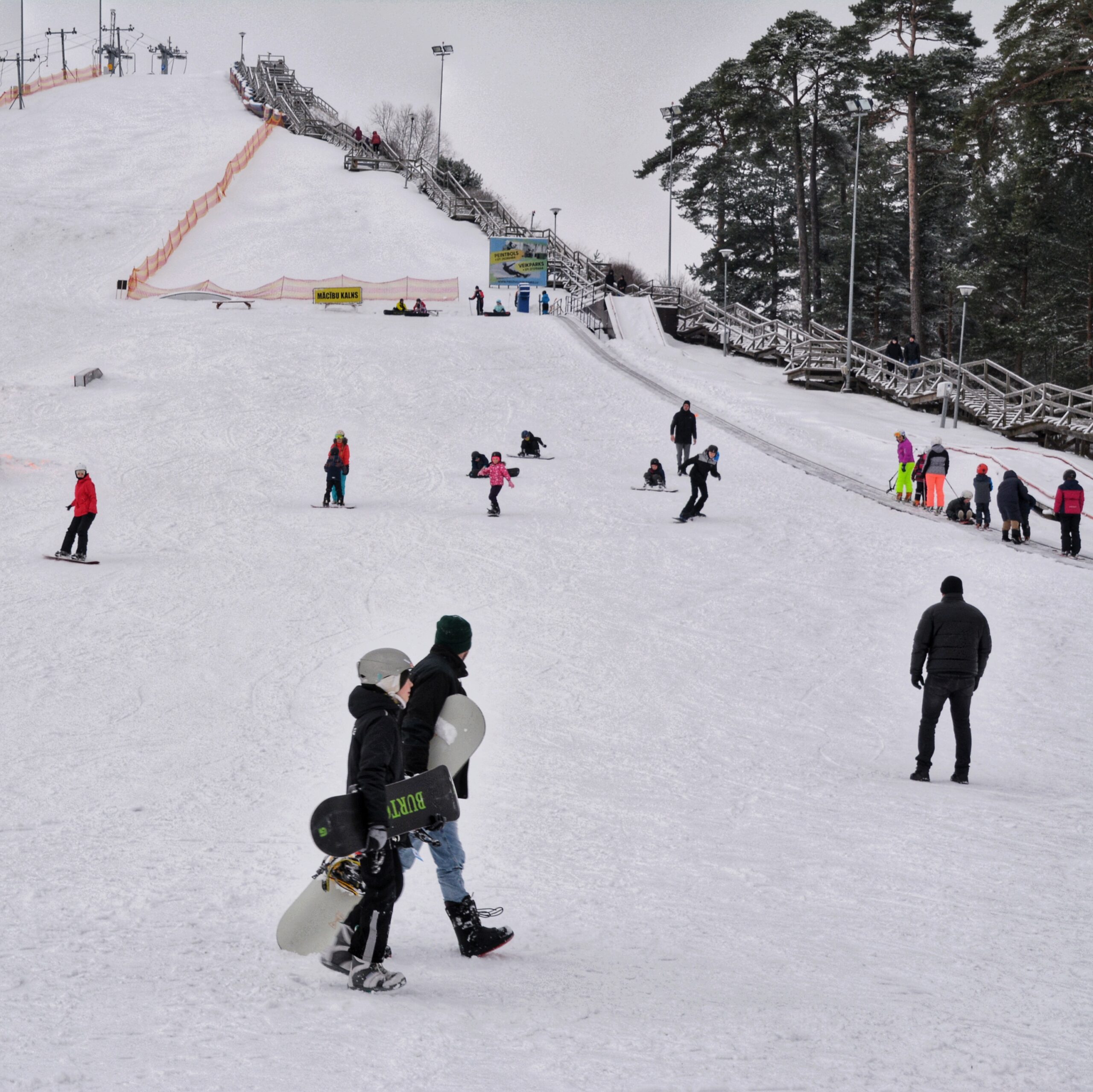 Mums pašiem un zinu, ka arī citiem, patīk laiku pa laikam uzkāpt slēpošanas kalnā. Taču, kopš uz kalna tiek sagatavota mākslīgā sniega sega, vairāki trepju posmi ir pilnībā aizpūsti ar sniegu. Līdz ar to nav iespējams tikt līdz pašam galam. Ja vien tas ir iespējams, ierosinu turpmāk notīrīt sniegu no kāpnēm.