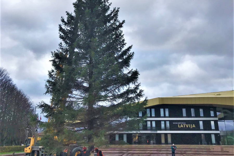 Lielajā laukumā uzstādīta galvenā Ziemassvētku egle