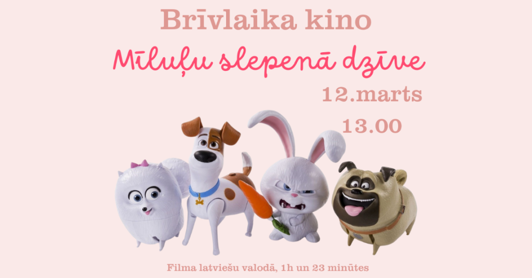 12. martā plkst. 13.00 Bērnu bibliotēkā skatīsimies animācijas filmu “Mīluļu slepenā dzīve”. Filma latviešu valodā, ilgums 1 stunda 23 minūtes.