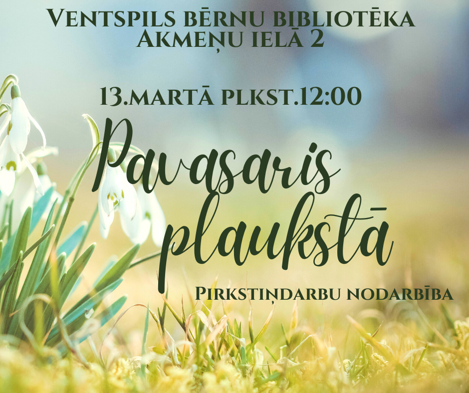 13.martā, plkst. 12.00 Bērnu bibliotēkā notiks brīvlaika pirkstiņdarbi “Pavasaris plaukstā”, No papīra un citiem materiāliem veidosim pavasarīgu apsveikumu.