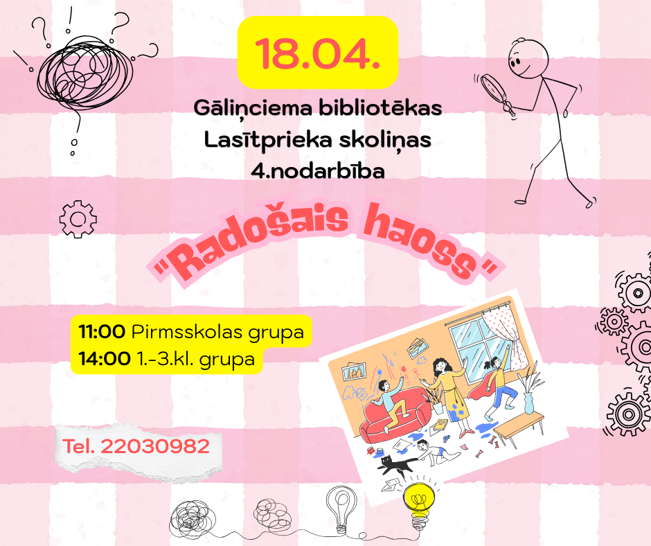 18. aprīlī plkst. 14.00 Gāliņciema bibliotēkā notiks trešā “Lasītprieka skoliņa 2026” nodarbība 1.-3.klašu skolēniem
