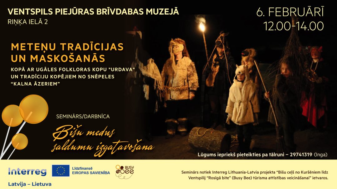 Kopā ar Ugāles folkloras kopu “Urdava” un tradīciju kopējiem no Snēpeles “Kalna Āzeriem” – iepazīsim Meteņa ticējumus, iesim budēļos, dedzināsim ugunskuru, veiksim saulgriežu rituālu. Meteņi bija pēdējā diena, kad vēl varēja iet ķekatās jeb budēļos. Maskošanās mērķis bija atjaunoties un iegūt jaunus spēkus, tāpēc gājieni bija skaļi un jautri, budēļi lēkāja, trokšņoja, dziedāja un dancoja. Nereti Meteņus uzskata par bērnu svētkiem, tāpēc runā, ka pati Laima vai Metenis šajā dienā metot dāvanas mazajiem rokās. Ieeja iepriekš pieteiktiem dalībniekiem.