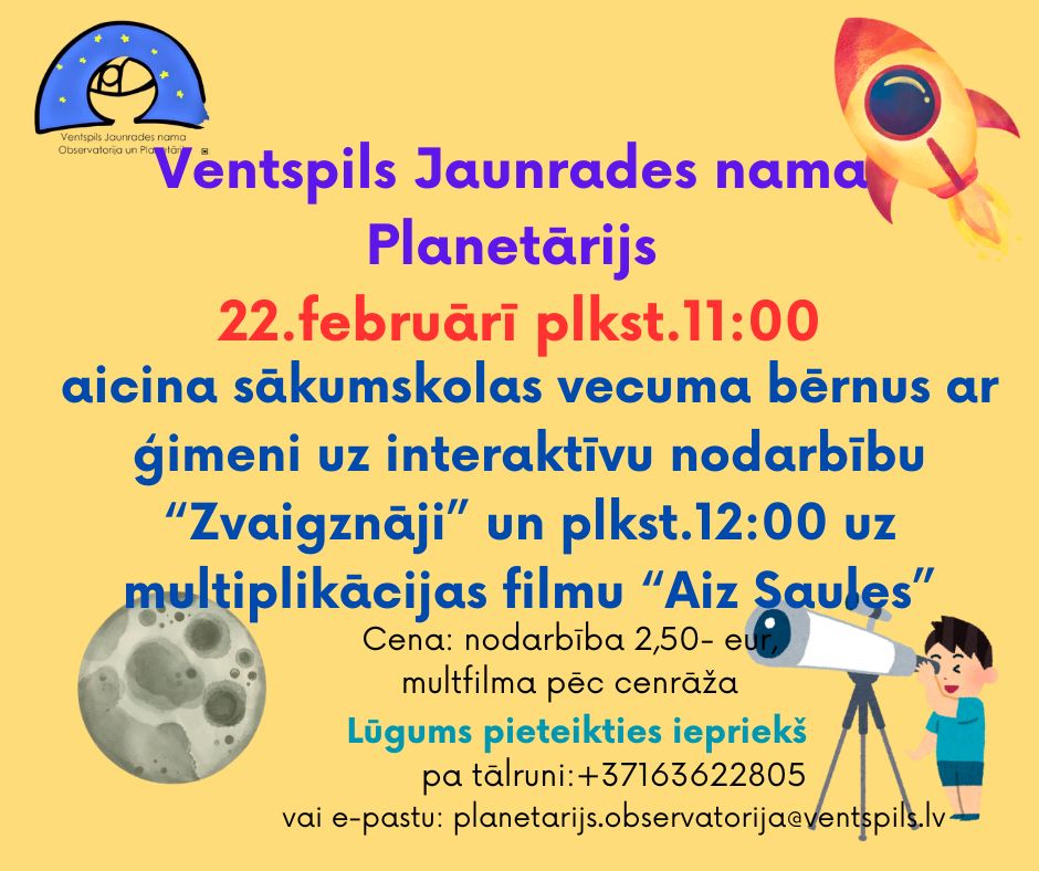 Aicinām 22.februārī plkst.11:00 ģimenes Planetārijā apmeklēt interaktīvu nodarbību ” Zvaigznāji”