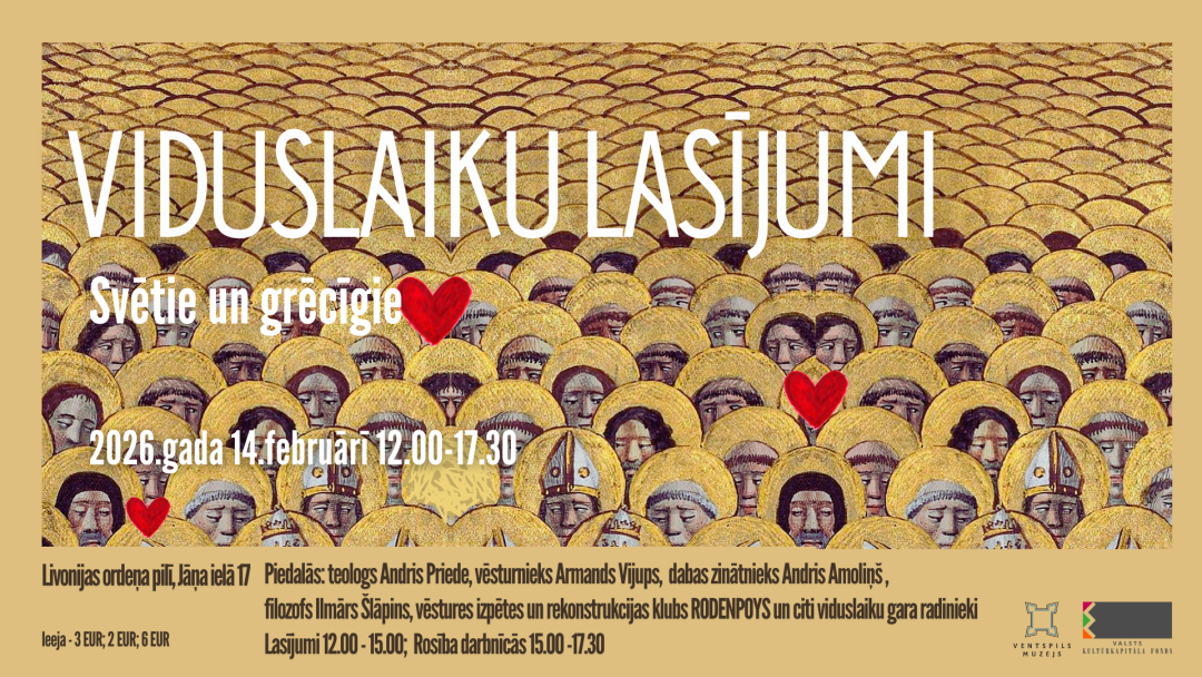 Pasākums notiek ar VKKF atbalstu. Ieeja ar muzeja ieejas biļeti –Pieaugušajiem 3,00 EUR; Studentiem, skolēniem, pensionāriem, III grupas invalīdiem, uzrādot apliecību 2,00 EUR; Ģimenes biļete 6,00 EUR.