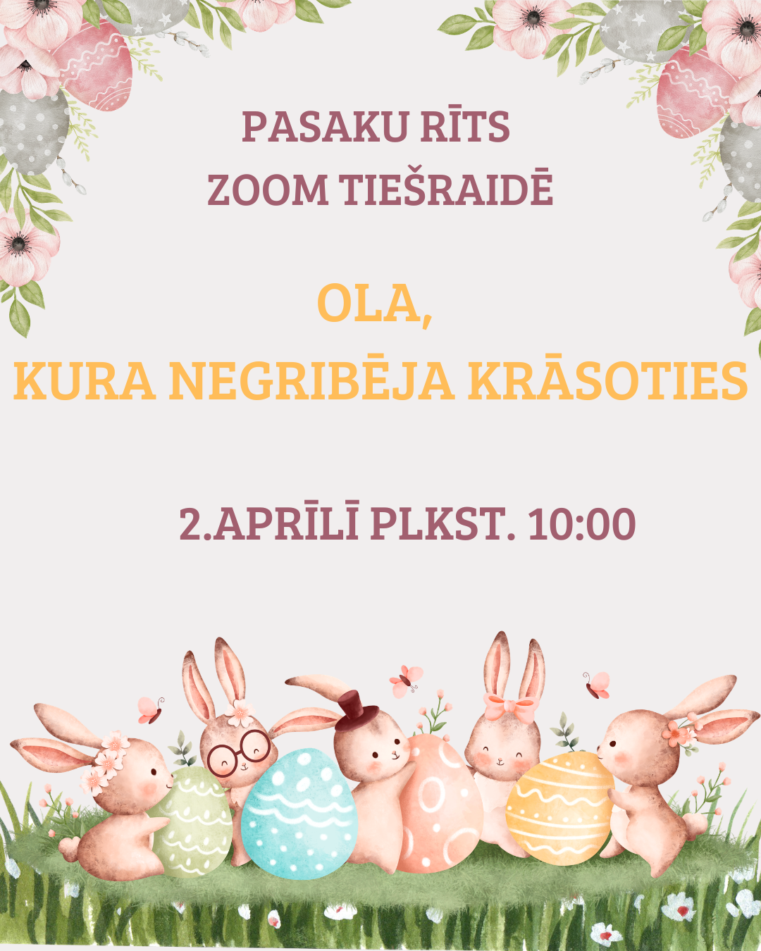 2. aprīlī plkst. 10.00 notiks “ZOOM Pasaku rīts”. Fragmentus no Lūcijas Strautas grāmatas “Ola, kura negribēja krāsoties” lasīs bibliotekāre Alise.