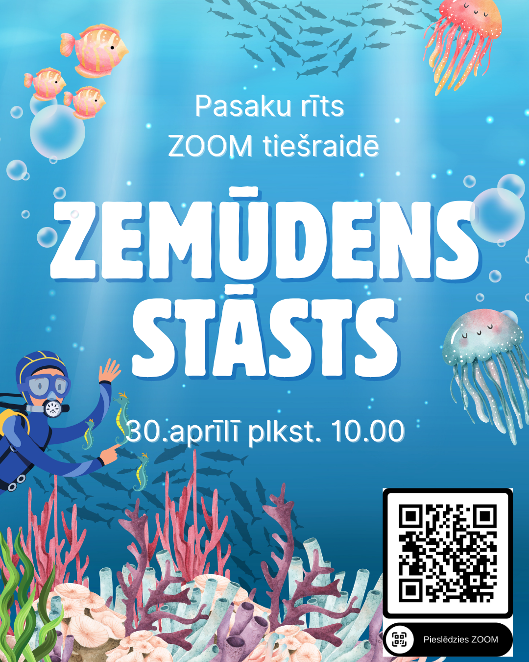 30. aprīlī plkst. 10.00 notiks “ZOOM Pasaku rīts”. Bibliotekāre Inga lasīs fragmentus no Ķēstura Kasparaviča grāmatas “Zemūdens stāsts”.