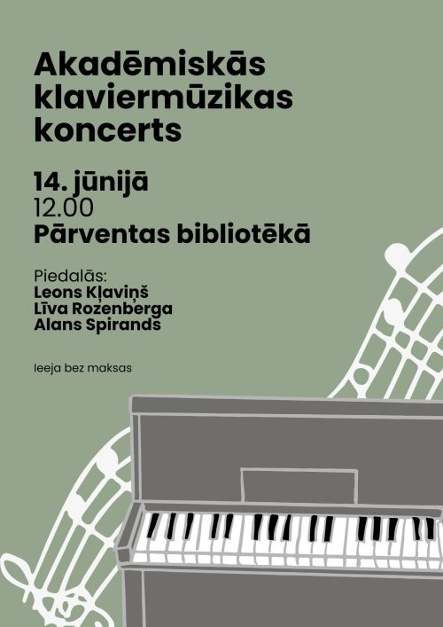 Akadēmiskās klaviermūzikas koncerts. Piedalās: Leons Kļaviņš, Līva Rozenberga, Alans Spirands.