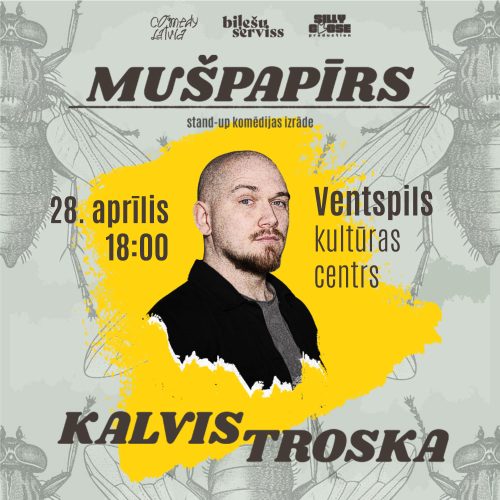 Komiķis Kalvis Troska izziņo savu jaunāko stand-up komēdijas izrādi “Mušpapīrs” un dodas Latvijas tūrē. “Mušpapīrs” pirmizrādi piedzīvos 24.martā, kultūras namā “Wiktorija”, Liepājā, un izrāde būs redzama vēl daudzās pilsētās, tūri noslēdzot 11.maijā, Rīgā. “Mušpapīru” iesildīs “Comedy Latvia” komiķis Kārlis Strautiņš.