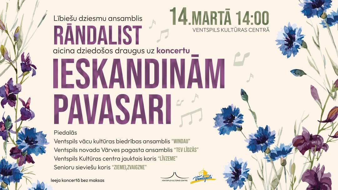 14. martā plkst. 14.00 Kultūras centrā Lībiešu dziesmu ansamblis “Rāndalist” aicina dziedošos draugus uz koncertu “Ieskandinām pavasari”.