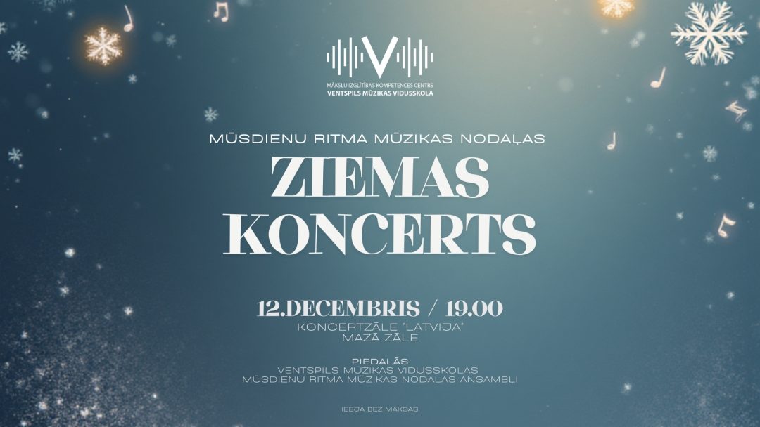 Ventspils Mūzikas vidusskolas profeisonālās ievirzes Mūsdienu ritma mūzikas nodaļas audzēkņi aicina uz ikgadējo ZIEMAS KONCERTU.