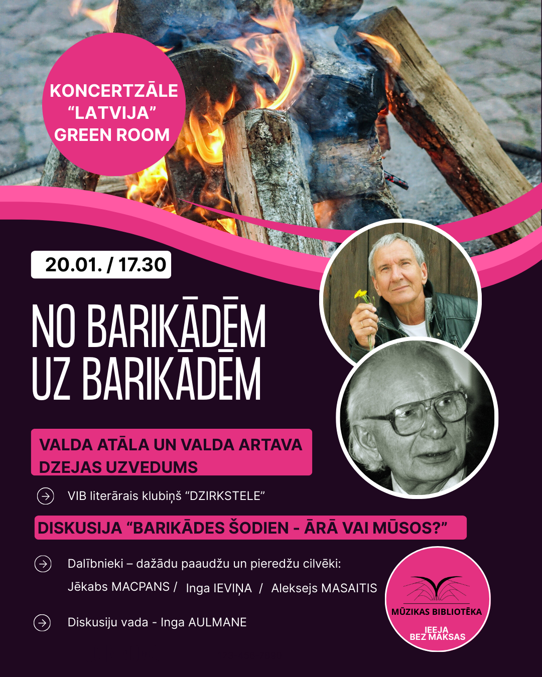 Otrdien, 20.janvārī, plkst. 17.30 koncertzāles “Latvija” Green Room telpā notiks dzejas, mūzikas un sarunu pasākums “No barikādēm līdz barikādēm”, kas aicina domāt ne tikai par 1991. gada janvāra barikādēm kā vēsturisku notikumu, bet par brīvību kā personisku un sabiedrisku izvēli arī šodien.