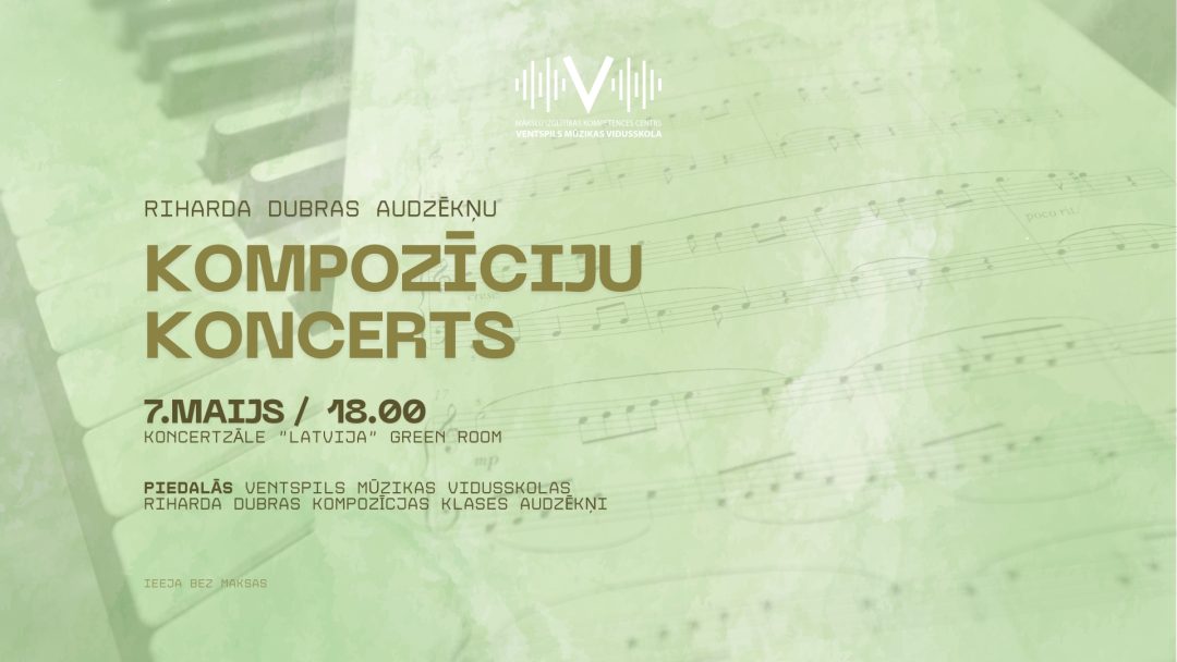 Aicinām uz Ventspils Mūzikas vidusskolas pedagoga Riharda Dubras kompozīcijas klases audzēkņu KOMPOZĪCIJU KONCERTU