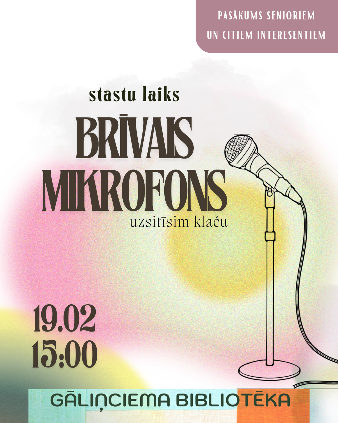 19. februārī, plkst. 15.00 Gāliņciema bibliotēkā notiks stāstu laika pasākums “Brīvais mikrofons”, kurā seniori un citi interesenti varēs savā starpa parunāties, izrunāties un paklačot. ☕