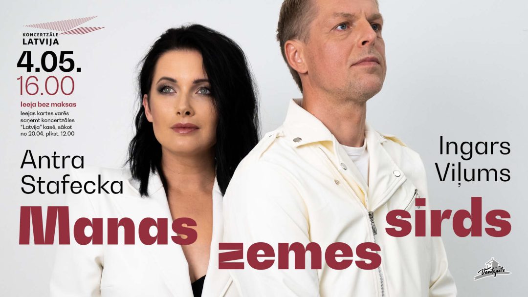 Antras Stafeckas un Ingara Viļuma gaidāmais koncerts “Manas zemes sirds” klausītājus priecēs ar aizvien jaunām dziesmām, kuras veltītas Latvijas dabai, cilvēkiem un mūsu dzīves ceļiem. Klausītājiem klātienē būs iespēja izbaudīt gan jaunos skaņdarbus, gan iemīļotas dziesmas no mākslinieku iepriekšējo gadu projektiem. Koncertā tiks iekļautas arī klausītājiem zināmas un jau novērtētas dziesmas – “Dzīparos”, “Dziļumā”, “Es meitiņa kā smildziņa”, “Sauciet” un “Baltu dzīvi nodzīvot”.