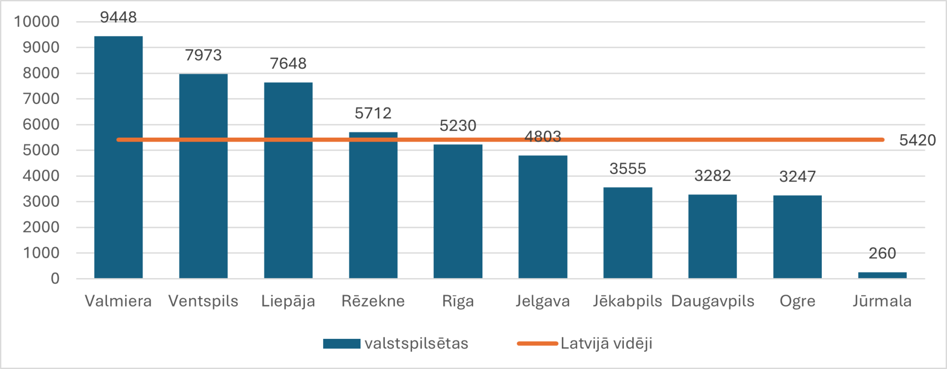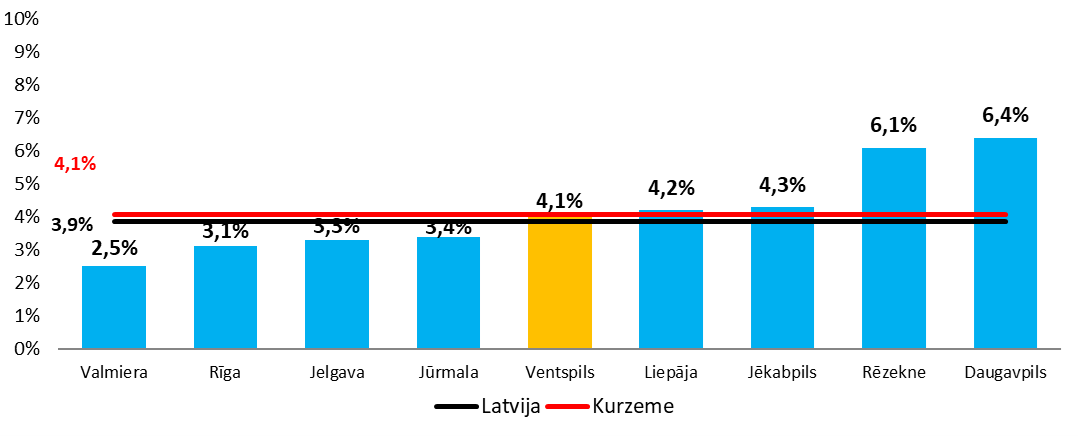 Datu avots: CSP; PMLP dati par iedzīvotāju skaitu. Ventspils domes administrācijas Ekonomikas un iepirkumu nodaļas aprēķins